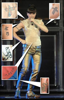 Como podemos perceber na foto, Mel C tem tatuagens nos braços, nas costas, na mão direita, na barriga e na perna. Kanji, dragão, escrita "angel" e uma cruz, são algumas das tatuagens de Mel C.